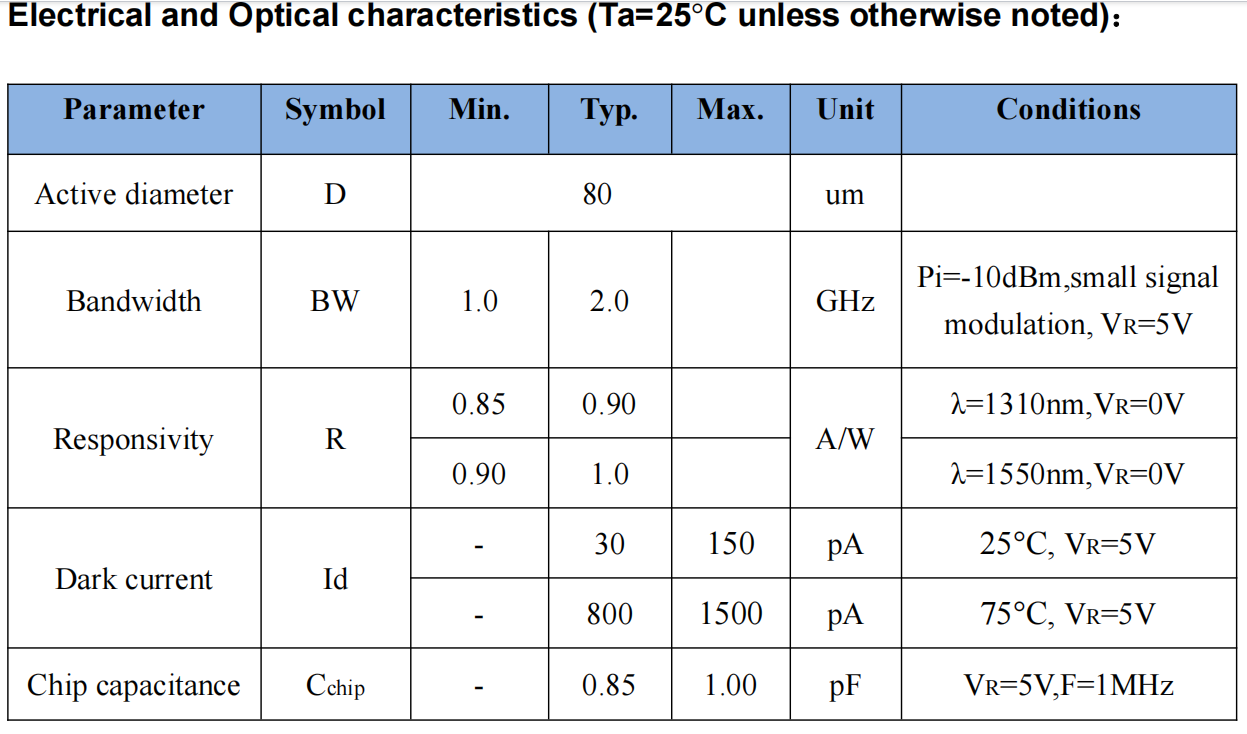SAN-U Self-developed photodiode chip detector chip Φ80um InGaAs PD chip